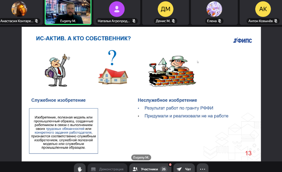 Во время вебинара участники смогли задать экспертам свои вопросы и получить практические рекомендации по использованию инструментов интеллектуальной собственности для повышения эффективности бизнеса.