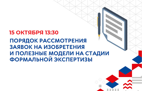 15 октября 2025 г. в 13-30 состоится тематический вебинар «Порядок рассмотрения заявок на изобретения и полезные модели на стадии формальной экспертизы»