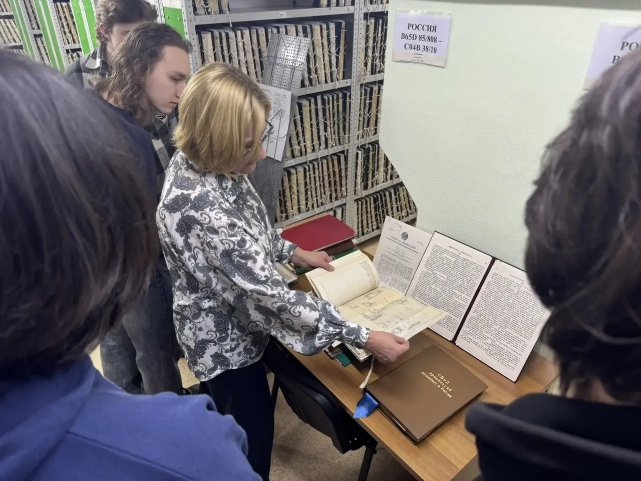 О цифровой трансформации Государственного патентного фонда и его уникальных ресурсах рассказала Анжела Родионова, начальник отдела хранения и выдачи патентной документации и научно-технической литературы. Студенты с неподдельным интересом рассматривали привилегии Российской империи, хранящиеся в фондах библиотеки.